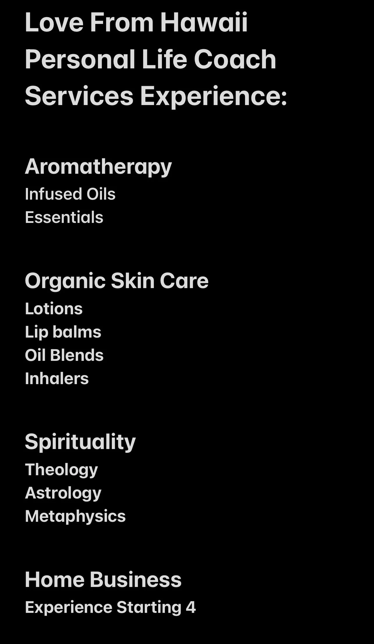 Love from Hawaii provides personal Life Coach Services that include my experience in: